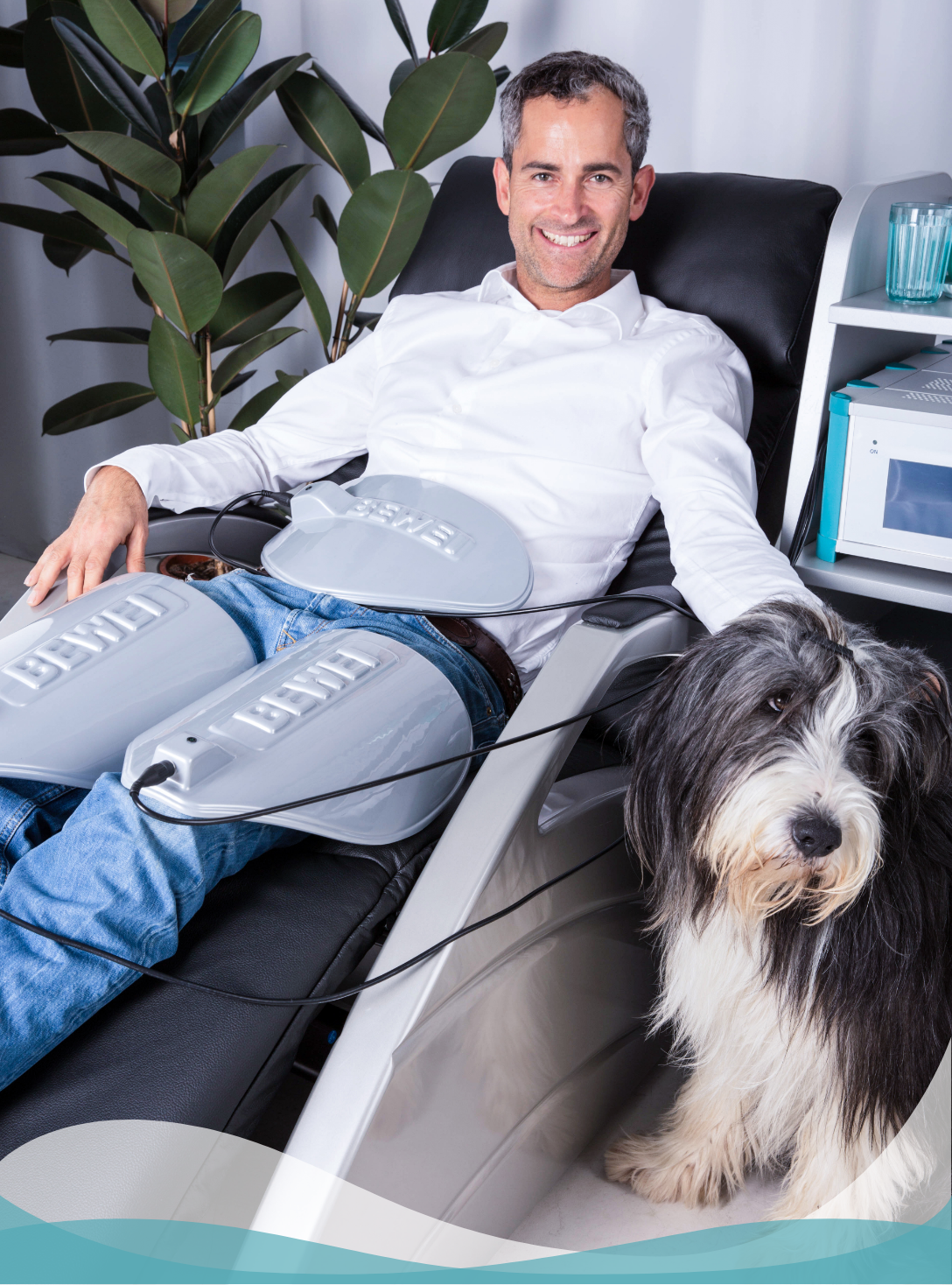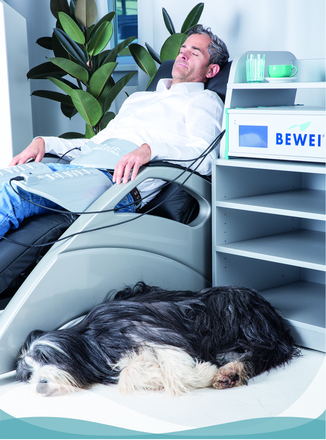 Sie liegen für ca. 25 Minuten entspannt auf der BEWEI-Liege – die vier großflächigen Applikatoren (je einer auf dem Oberschenkel, einer auf dem Bauch, einer integriert in das Rückenteil der Liege) übertragen die Radiofrequenzwellen. Sie spüren nichts außer einer leichten, angenehmen Wärme und einer tiefen Entspannung.